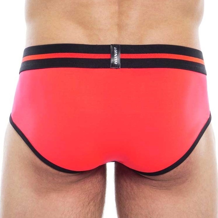 The HUNK² Adonis Fascino² brief is a cool mens brief in red and black. The elastic waistband is black with the logo in red. HUNK² strikes the perfect balance between masculinity, style and comfort. HUNK² is not a fast-fashion brand but stand for sustainable product with a long life span. We share the same values at Colomoda! The subtle pouch creates comfort and looks great. Shop your cool briefs at Colomoda.78% Nylon - 12% Spandex